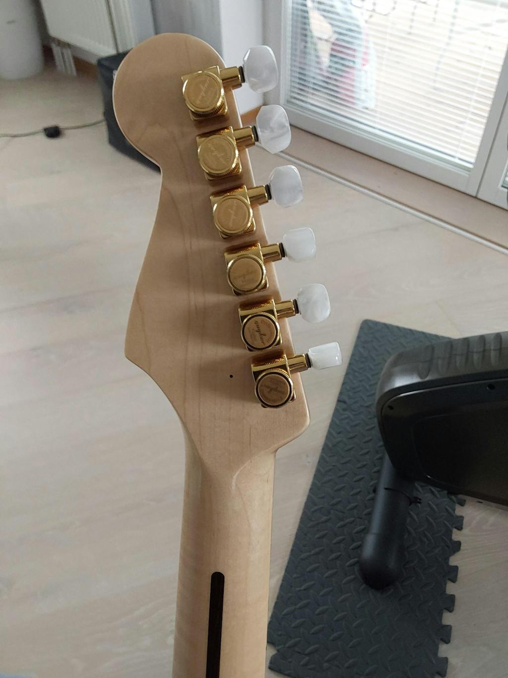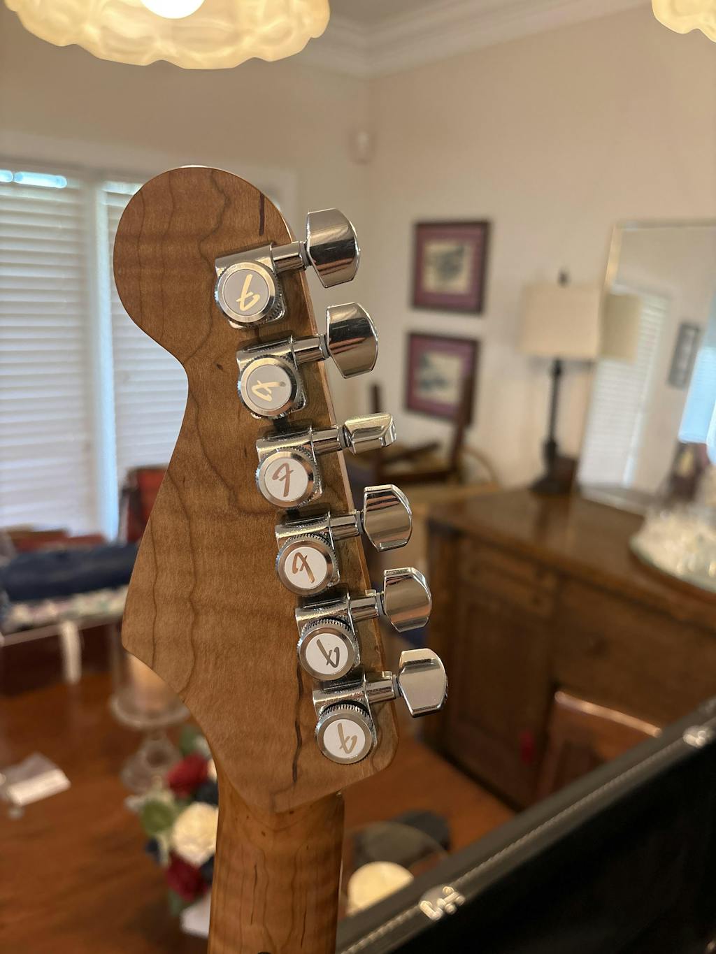 The Tuner Pin Drill Locator works for left and right-side tuners, it can locate Fender single pin and two pin locking tuners, single pin Schaller tuners, two pin Schaller tuners, one pin Sperzel tuners. It fits 3/8”and 10 millimeters dia. pegholes. Two drill bits included; instructions included. Made of anodized aluminum.